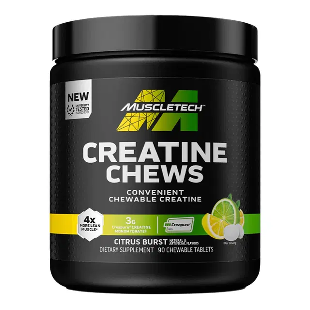 MuscleTech® Creatine Chews are the perfect addition to your supplement stack. Each serving (3 chewable tablets) provides 3 g of Creapure® creatine monohydrate in a tasty and convenient candy-like chew!